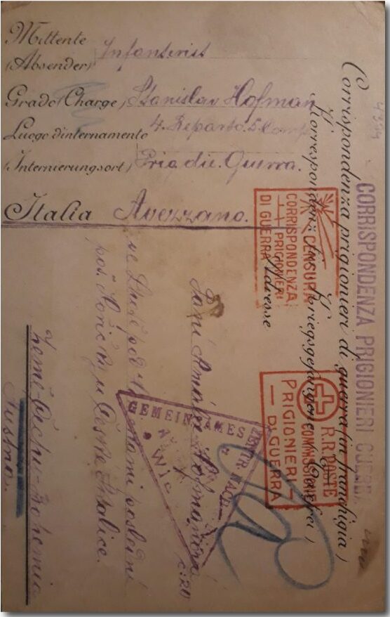 La convenzione dell’Aja garantiva ai prigionieri di inviare e ricevere posta: i prigionieri di truppa potevano scrivere mensilmente quattro cartoline, gli ufficiali otto. Il numero delle righe era limitato e la scrittura doveva essere chiara, in modo da agevolare il lavoro della censura, che controllava anche la posta in arrivo e i pacchi.